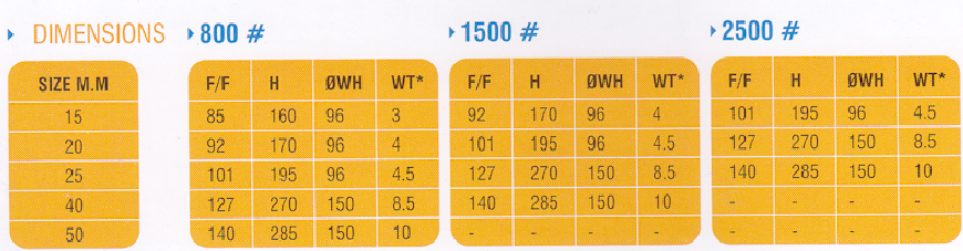 Dimensions of FORGED STEEL GLOBE VALVE